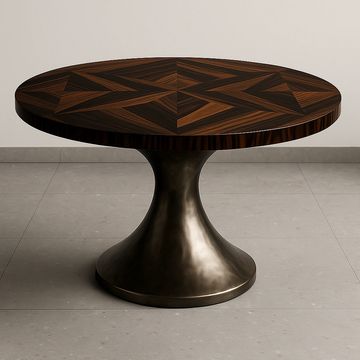 ✨ Ideal for 4–6 seats | Perfect for breakfast, brunch, or intimate dinnersVerona Breakfast Table – Round 130cm Macassar Ebony with Sculptural Iron Base