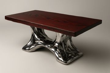 Discover the bold elegance of the Metallo Dining Table – a statement piece crafted for those who appreciate extraordinary design. Featuring a warm American Oak veneer top with expressive natural grain and a fluid, sculptural base in high-gloss polished metal, this table brings modern luxury into any interior.